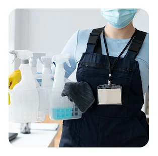 Cleaning tools, disinfectants, and eco-friendly chemicals.